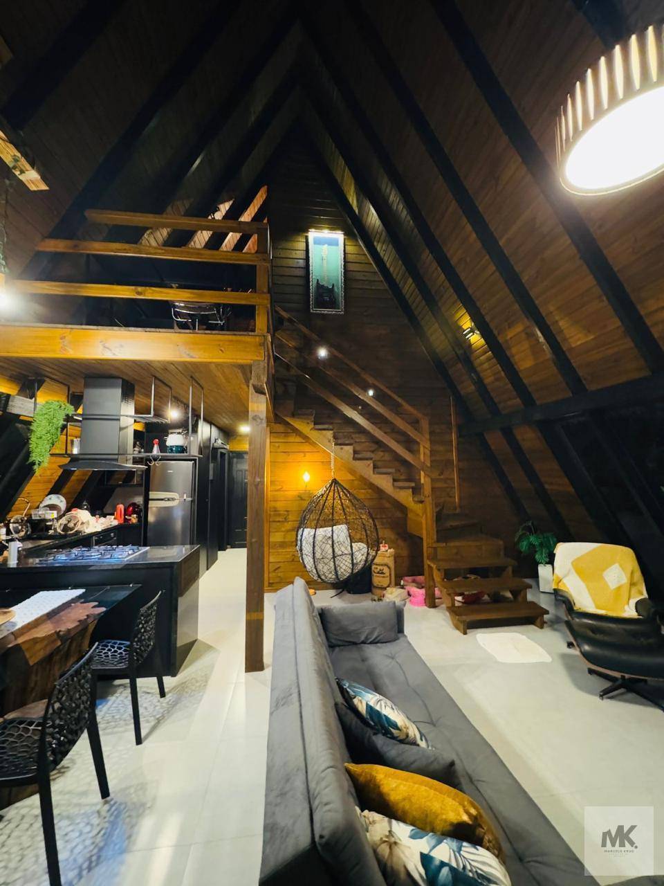 tem 220mts entre casa e deck. Mezanino com suíte escritório e varanda.